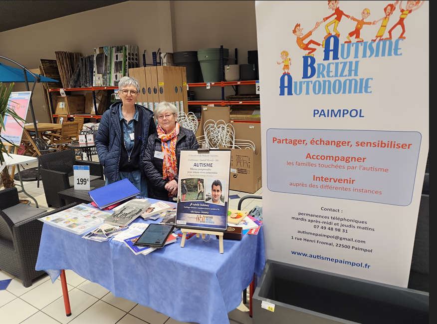 Mis en avantDans le hall d’accueil du Centre Leclerc à Paimpol Parc Richard, PaimpolA l'occasion du Mois de l'Autisme, nous tiendrons un stand sur lequel nous vous présenterons nos actions. Vous trouverez aussi un échantillon de notre pédagothèque.