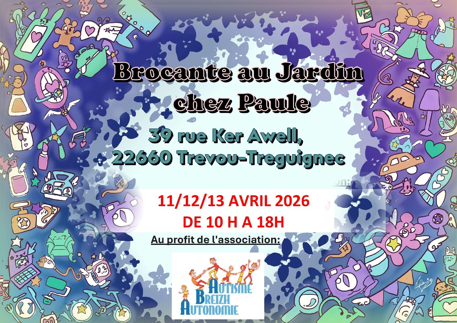 Chez Paule 39 rue Ker Awell, Trévou-TréguignecBrocante au jardin au profit de l’association Autisme Breizh Autonomie